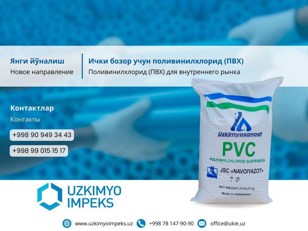 Ўзкимёимпекс МЧЖ компанияси 2024-йил 15-августдан бошлаб ички бозор учун поливинилхлорид (ПВХ) маҳсу…