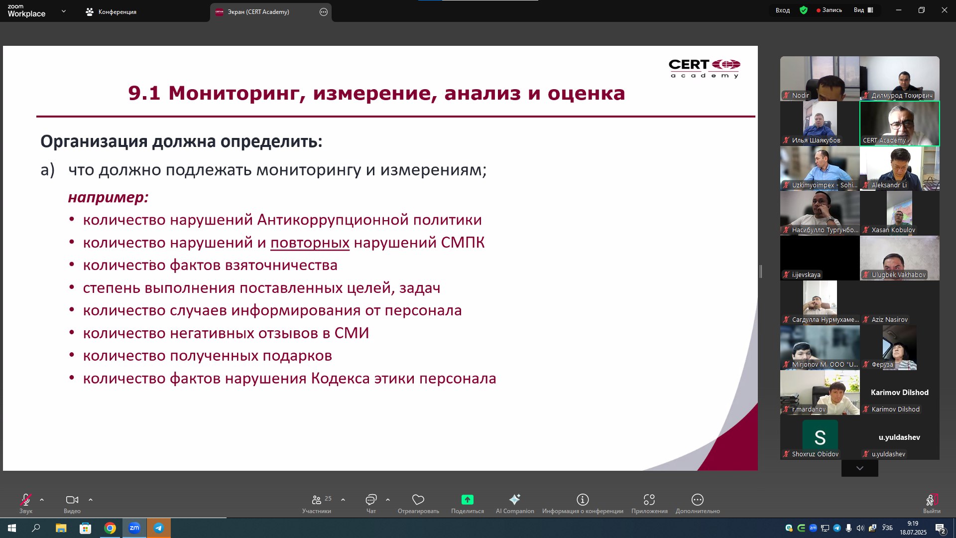 Корпоратив бошқарув самарадорлигини ошириш ҳамда ички жараёнларни халқаро стандартларга мувофиқ равишда ташкил этиш мақсадида компаниямиз ходимлари ҳозирда қуйидаги халқаро стандартлар бўйича ўқув курсларини ўтамоқдалар: