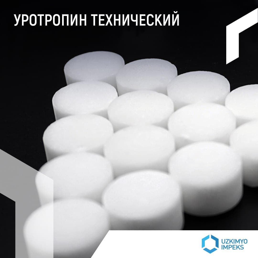 Уротропин технический (гексамин) производства АО "Навоиазот" представляет собой таблетки круглой фор…