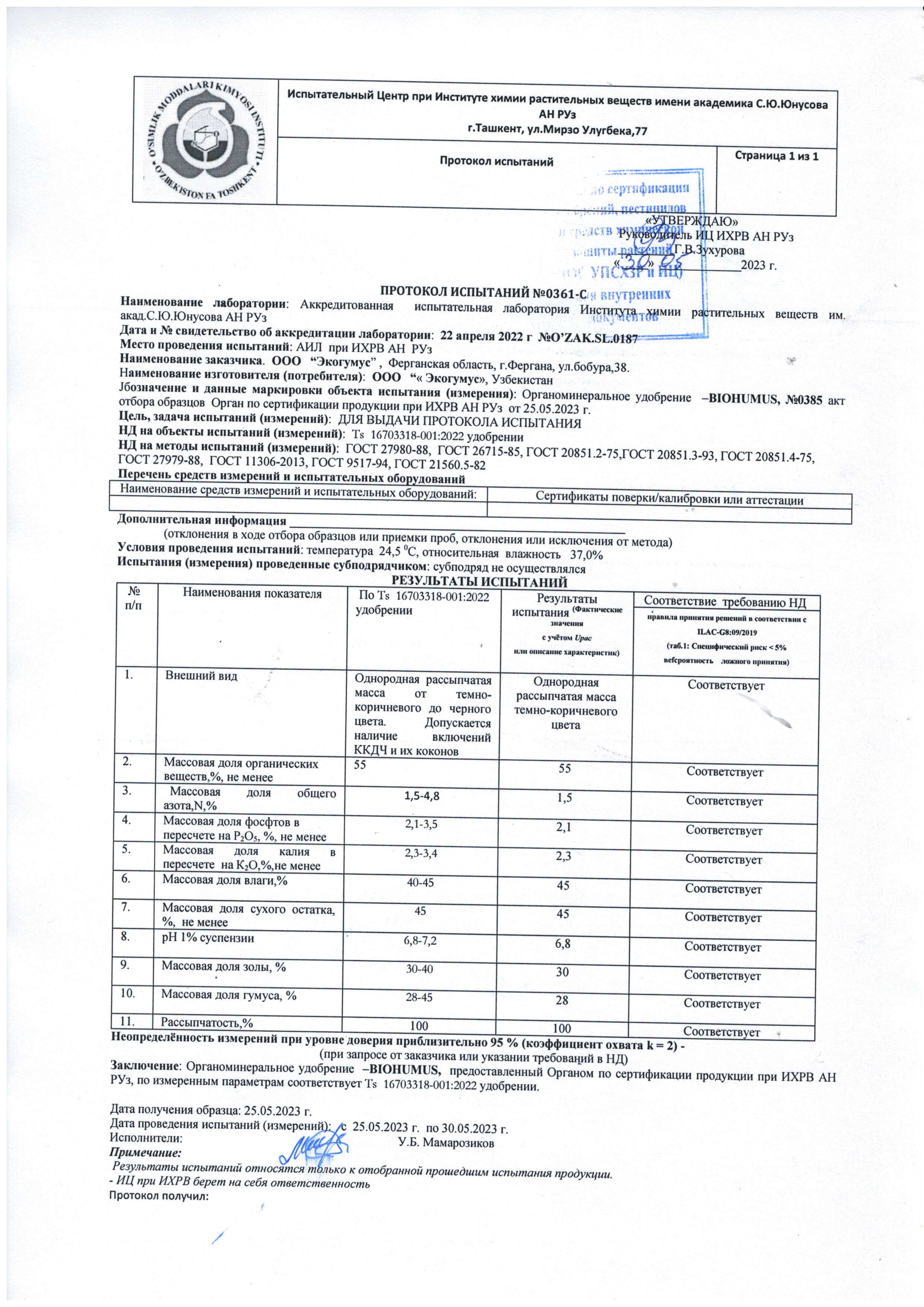 Компания «Узкимёимпэкс» предлагает на экспорт продукт “BIOHUMUS”