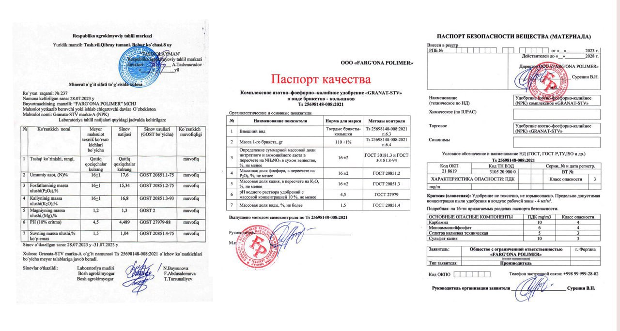 The company "Uzkimoimpex" offers the product "GRANAT STV" for export